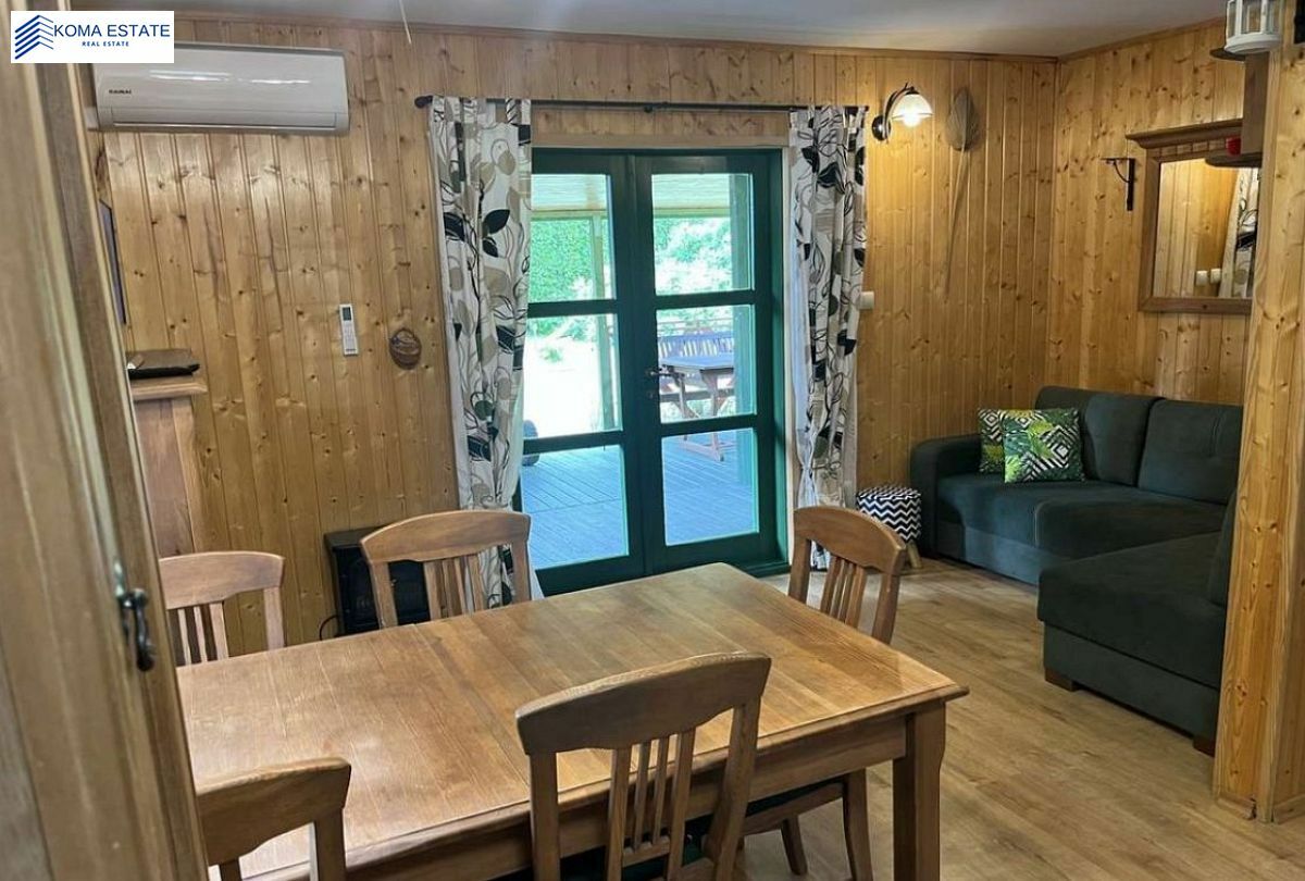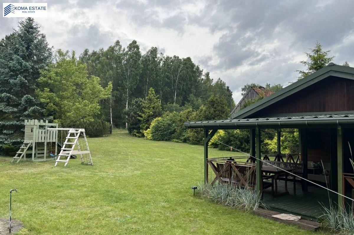 Nieruchomość usytuowana jest na działce o powierzchni 1250 m2. Budynek wykonany jest z drewna, co nie tylko wpływa na estetykę, ale również zapewnia przyjazny klimat wewnątrz. Dom był regularnie konserwowany i znajduje się w bardzo dobrym stanie. Ciepła woda dostarczana jest z bojlera, a dach pokryty jest blachodachówką, co zapewnia trwałość i ochronę przed warunkami atmosferycznymi.
